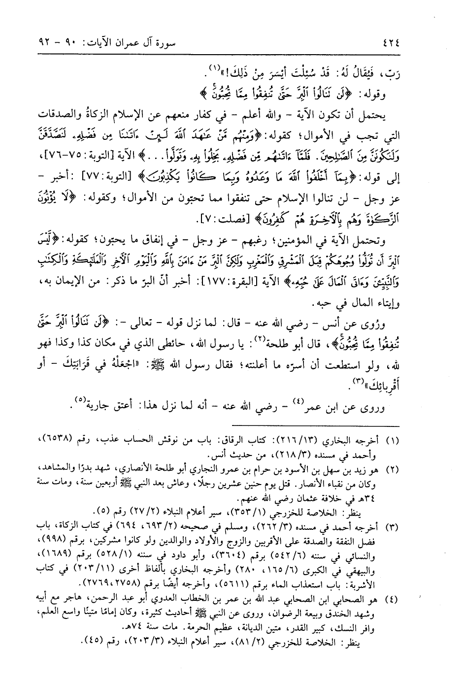 وقوله: (لَنْ تَنَالُوا الْبِرَّ حَتَّى تُنْفِقُوا مِمَّا تُحِبُّونَ (92)
