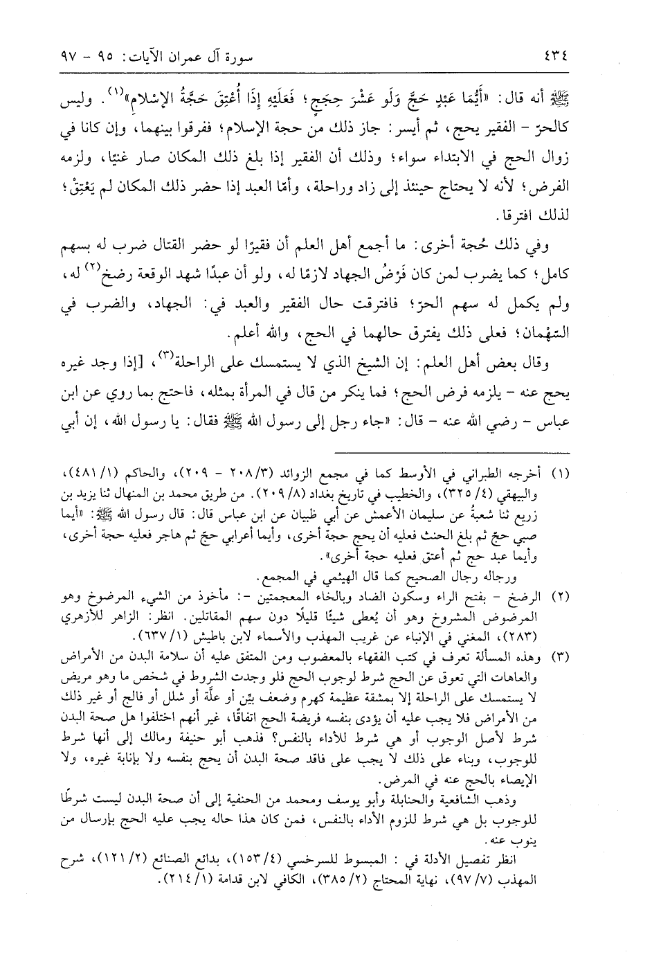 وفي ذلك حُجة أخرى: ما أجمع أهل العلم أن فقيرًا لو حضر القتال ضرب له بسهم كامل؛ كما يضرب لمن كان فَرضُ الجهاد لازمًا له، ولو أن عبدًا شهد الوقعة رضخ له، ولم يكمل له سهم الحر؛ فافترقت حال الفقير والعبد في: الجهاد، والضرب في السَّهْمان؛ فعلى ذلك يفترق حالهما في الحج، واللَّه أعلم.