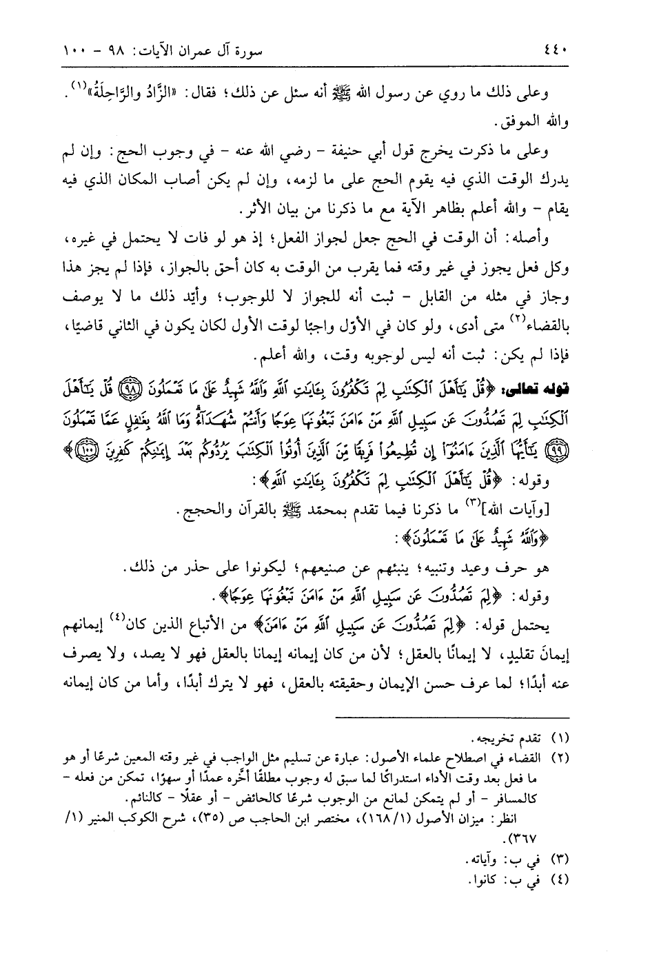 قوله تعالى: (قُلْ يَا أَهْلَ الْكِتَابِ لِمَ تَكْفُرُونَ بِآيَاتِ اللَّهِ وَاللَّهُ شَهِيدٌ عَلَى مَا تَعْمَلُونَ (98) قُلْ يَا أَهْلَ الْكِتَابِ لِمَ تَصُدُّونَ عَنْ سَبِيلِ اللَّهِ مَنْ آمَنَ تَبْغُونَهَا عِوَجًا وَأَنْتُمْ شُهَدَاءُ وَمَا اللَّهُ بِغَافِلٍ عَمَّا تَعْمَلُونَ (99) يَا أَيُّهَا الَّذِينَ آمَنُوا إِنْ تُطِيعُوا فَرِيقًا مِنَ الَّذِينَ أُوتُوا الْكِتَابَ يَرُدُّوكُمْ بَعْدَ إِيمَانِكُمْ كَافِرِينَ (100)