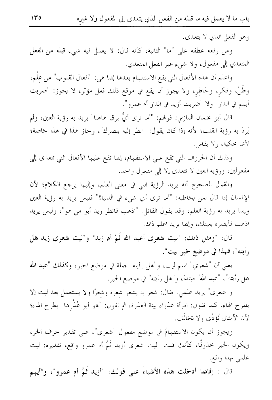 قال: " ومثل ذلك: " ليت شعري أعبد الله ثمّ أم زيد " و " ليت شعري زيد هل رأيته "، فهذا في موضع خبر ليت ".