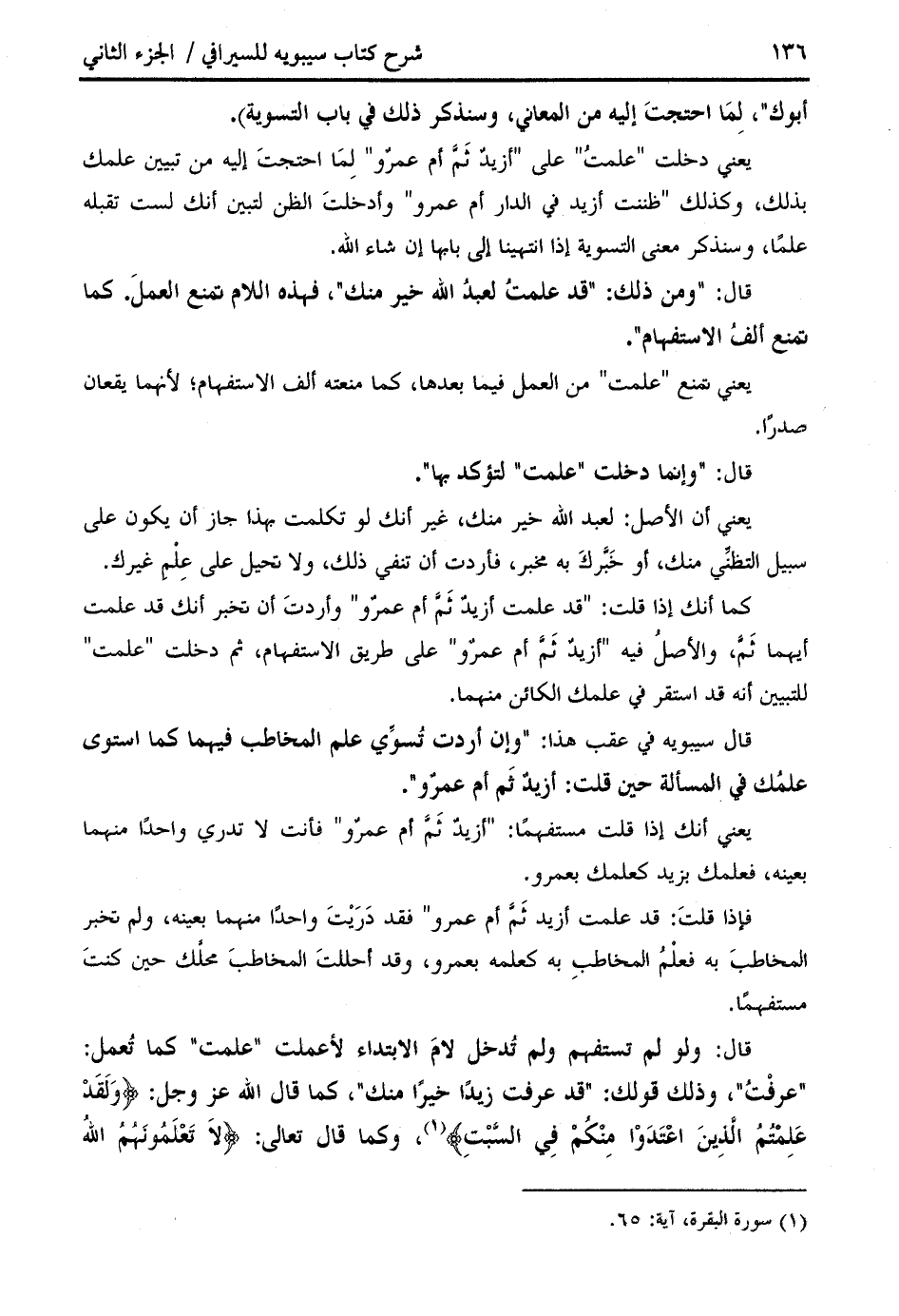 يعني أنك إذا قلت مستفهما: " أزيد ثمّ أم عمرو " فأنت لا تدري واحدا منهما بعينه، فعلمك بزيد كعلمك بعمرو.