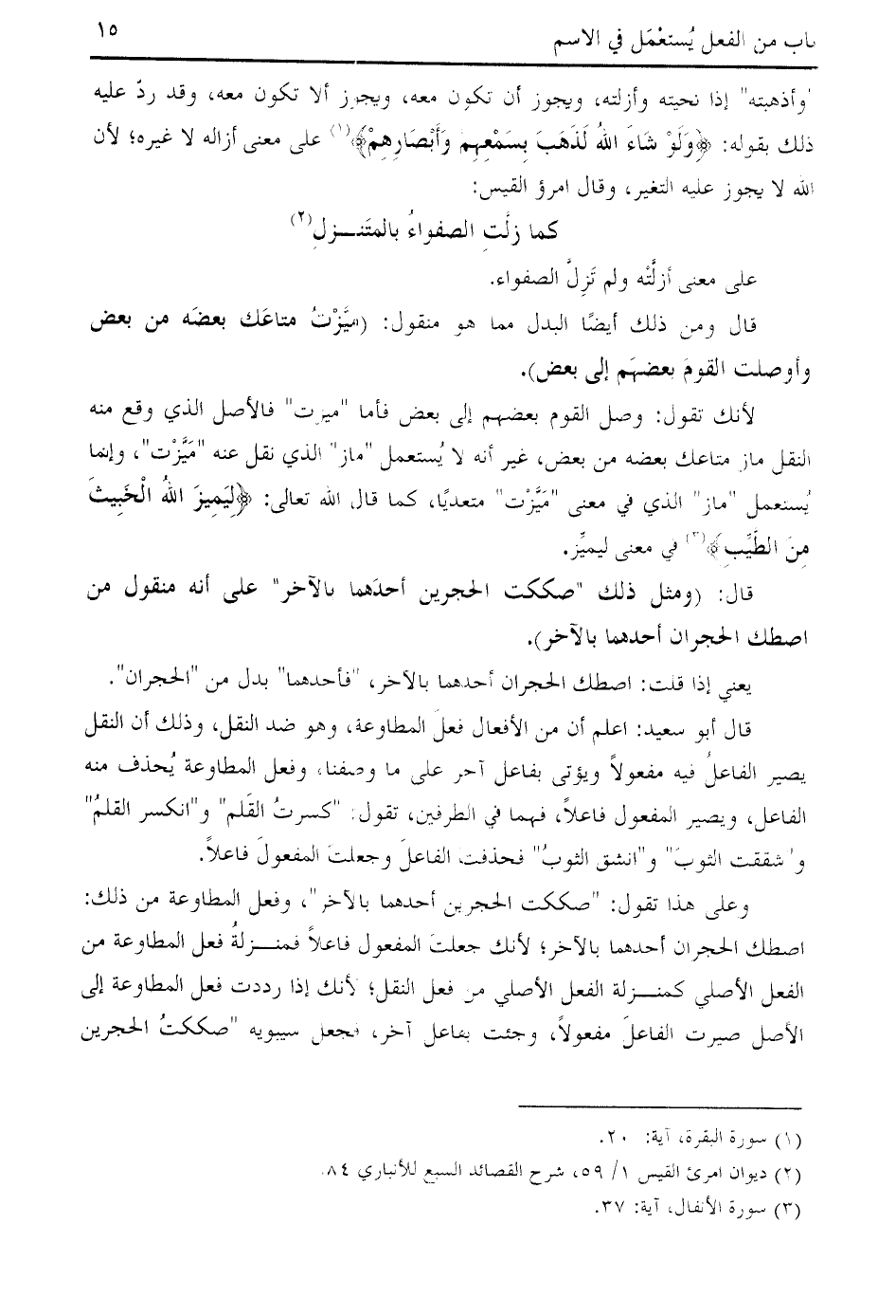 قال: (ومثل ذلك " صككت الحجرين أحدهما بالآخر " على أنه منقول من اصطك الحجران أحدهما بالآخر).