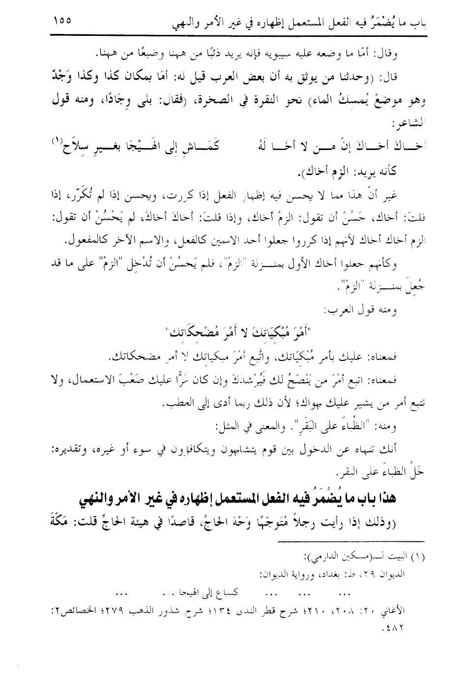 غير أنّ هذا مما لا يحسن فيه إظهار الفعل إذا كررت، ويحسن إذا لم تكرّر، إذا قلت: أخاك، حسن أن تقول: الزم أخاك، وإذا قلت: أخاك أخاك، لم يحسن أن تقول: