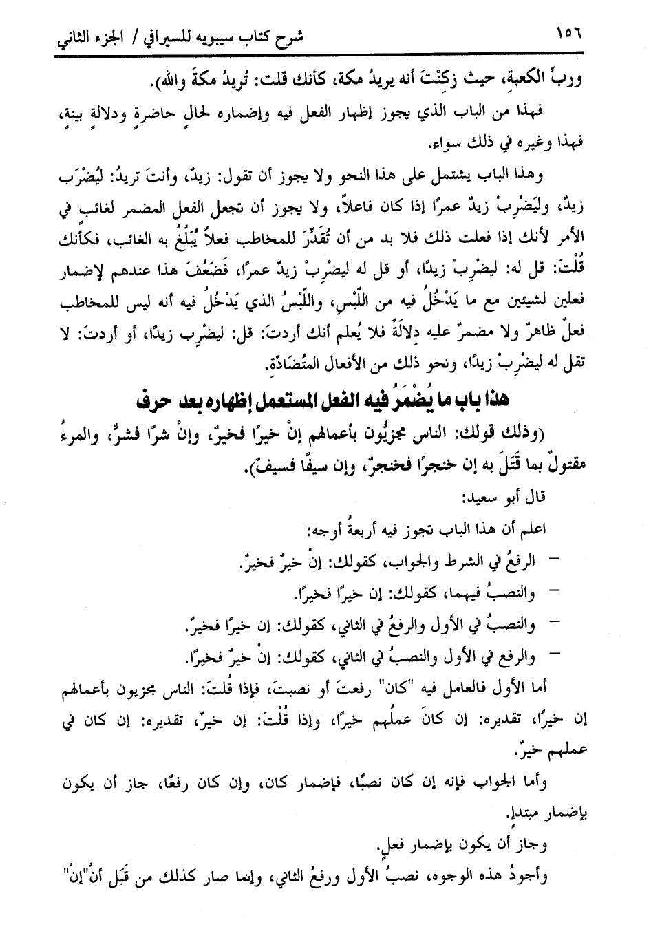 (وذلك قولك: الناس مجزيّون بأعمالهم إن خيرا فخير، وإن شرا فشرّ، والمرء مقتول بما قتل به إن خنجرا فخنجر، وإن سيفا فسيف).