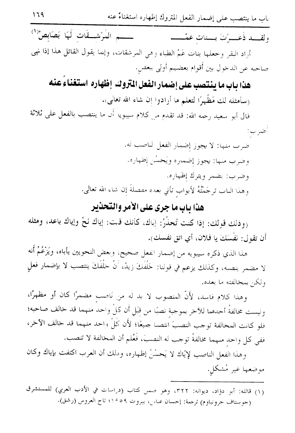 (¬1) قائله: أبو دؤاد، ديوانه: 322، وهو ضمن كتاب (دراسات في الأدب العربي) للمستشرق (جوستاف جرونباوم) ترجمة: إحسان عباس، بيروت 1959؛ تاج العروس (رشق).