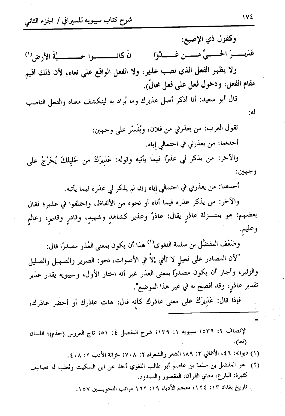وضعّف المفضّل بن سلمة اللغوي (¬2) هذا أن يكون بمعنى العذر مصدرا قال: