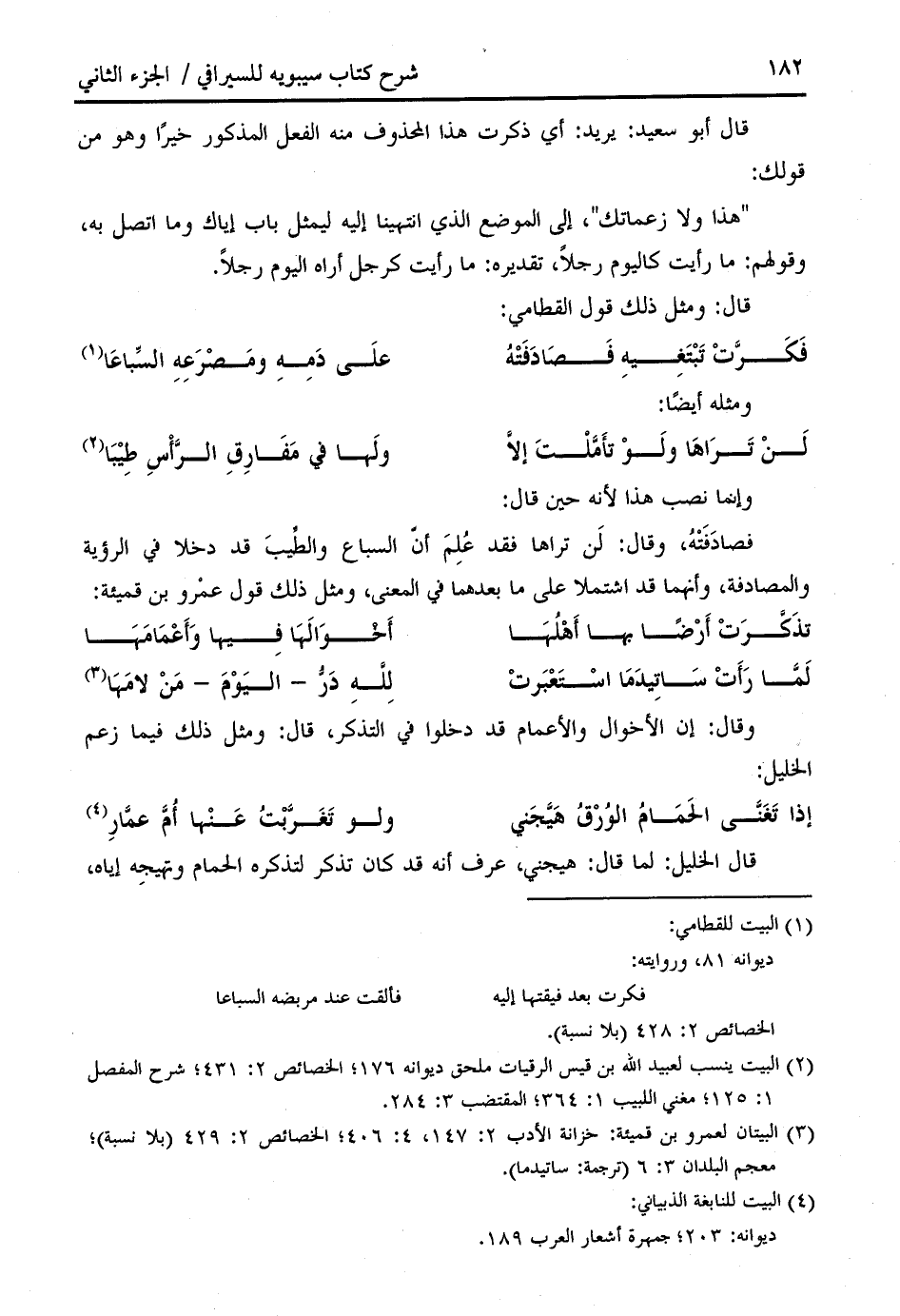 (¬2) البيت ينسب لعبيد الله بن قيس الرقيات ملحق ديوانه 176؛ الخصائص 2: 431؛ شرح المفصل 1: 125؛ مغني اللبيب 1: 364؛ المقتضب 3: 284.