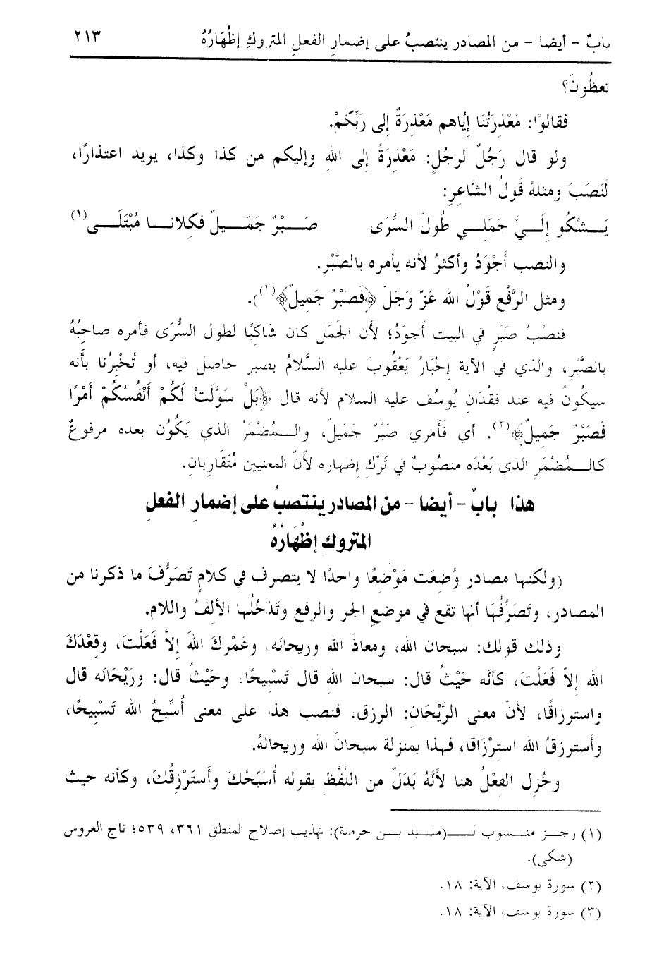 ومثل الرّفع قول الله عزّ وجلّ فَصَبْرٌ جَمِيلٌ) (¬2).