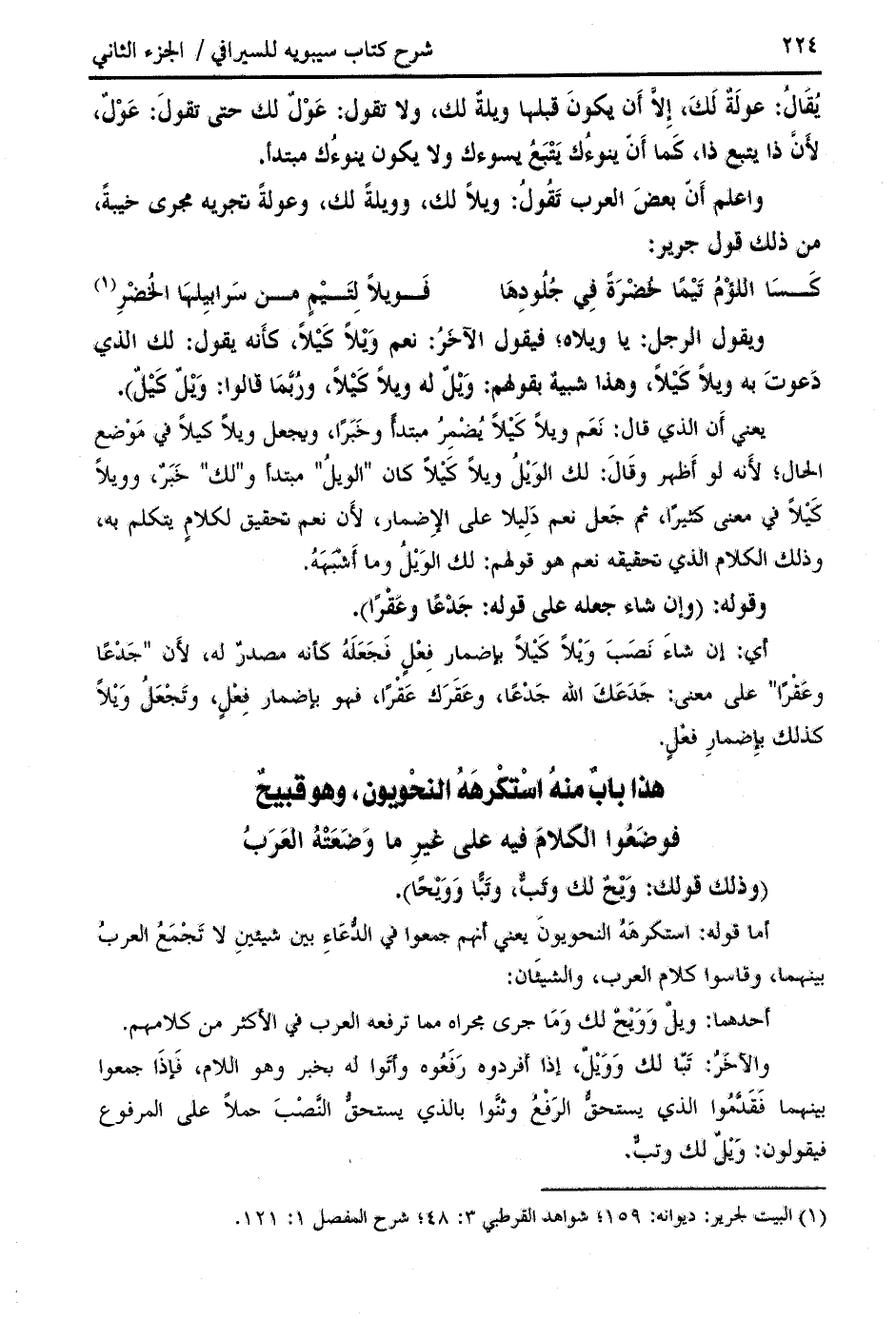 واعلم أنّ بعض العرب تقول: ويلا لك، وويلة لك، وعولة تجريه مجرى خيبة، من ذلك قول جرير: