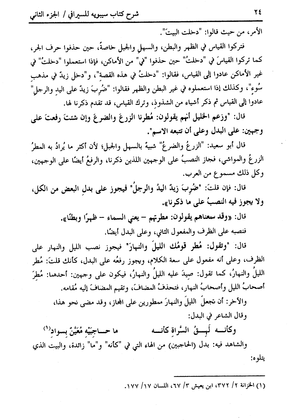 قال: فإن قلت: " ضرب زيد اليد والرجل " فيجوز على بدل البعض من الكل، ولا يجوز فيه النصب على ما ذكرنا».