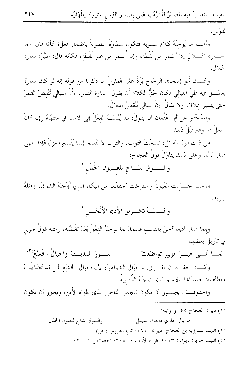 (¬3) البيت لجرير: ديوانه: 913؛ خزانة الأدب 4: 218؛ الخصائص 2: 420.