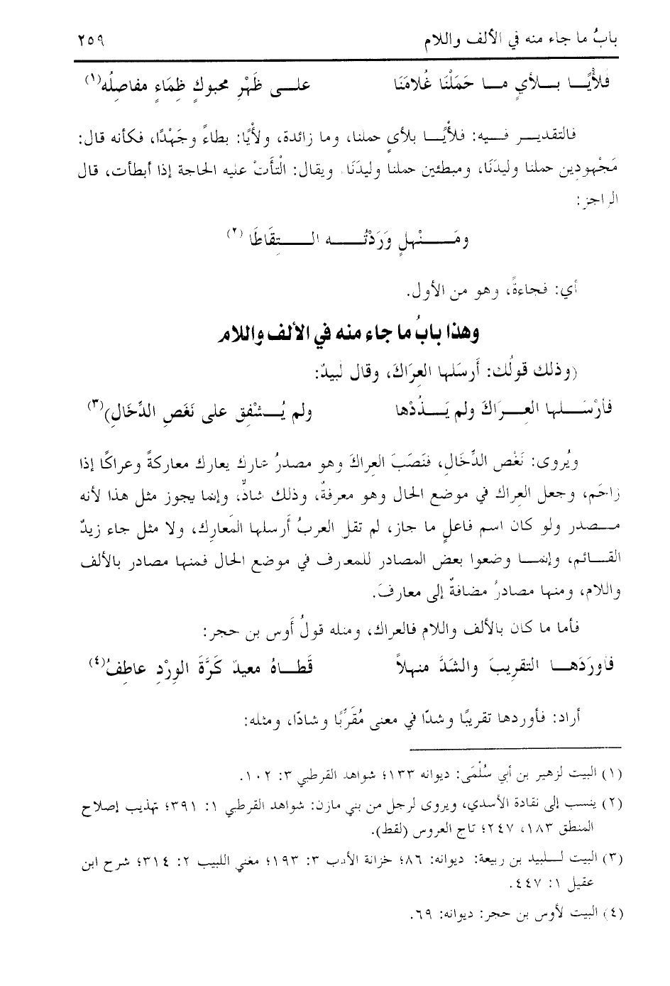(¬3) البيت للبيد بن ربيعة: ديوانه: 86؛ خزانة الأدب 3: 193؛ مغني اللبيب 2: 314؛ شرح ابن عقيل 1: 447.