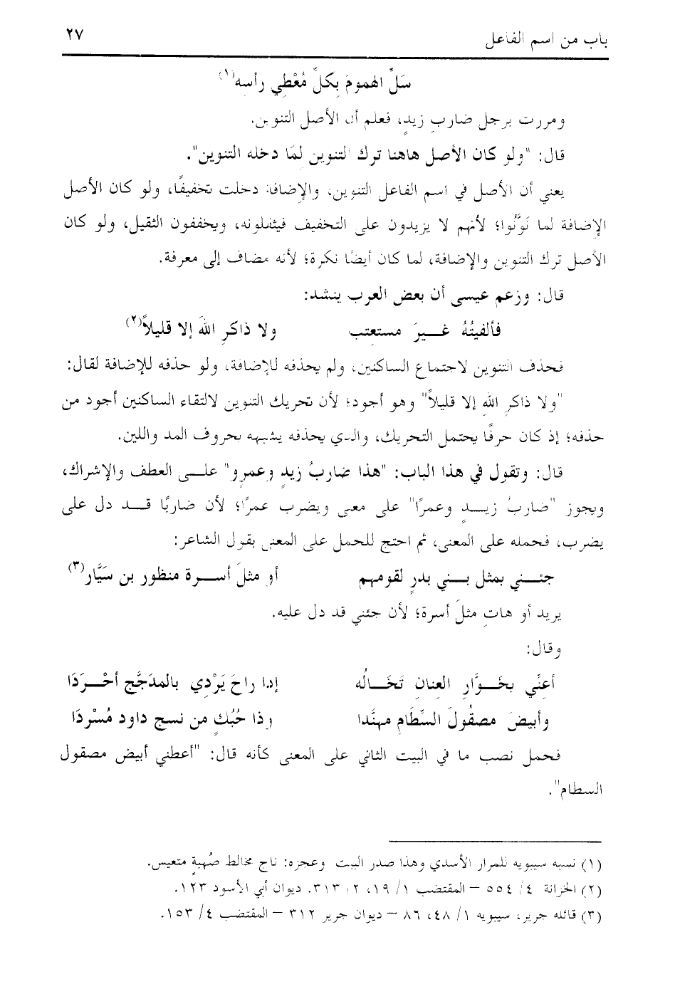 (¬2) الخزانة 4/ 554 - المقتضب 1/ 19، 2/ 313. ديوان أبي الأسود 123.