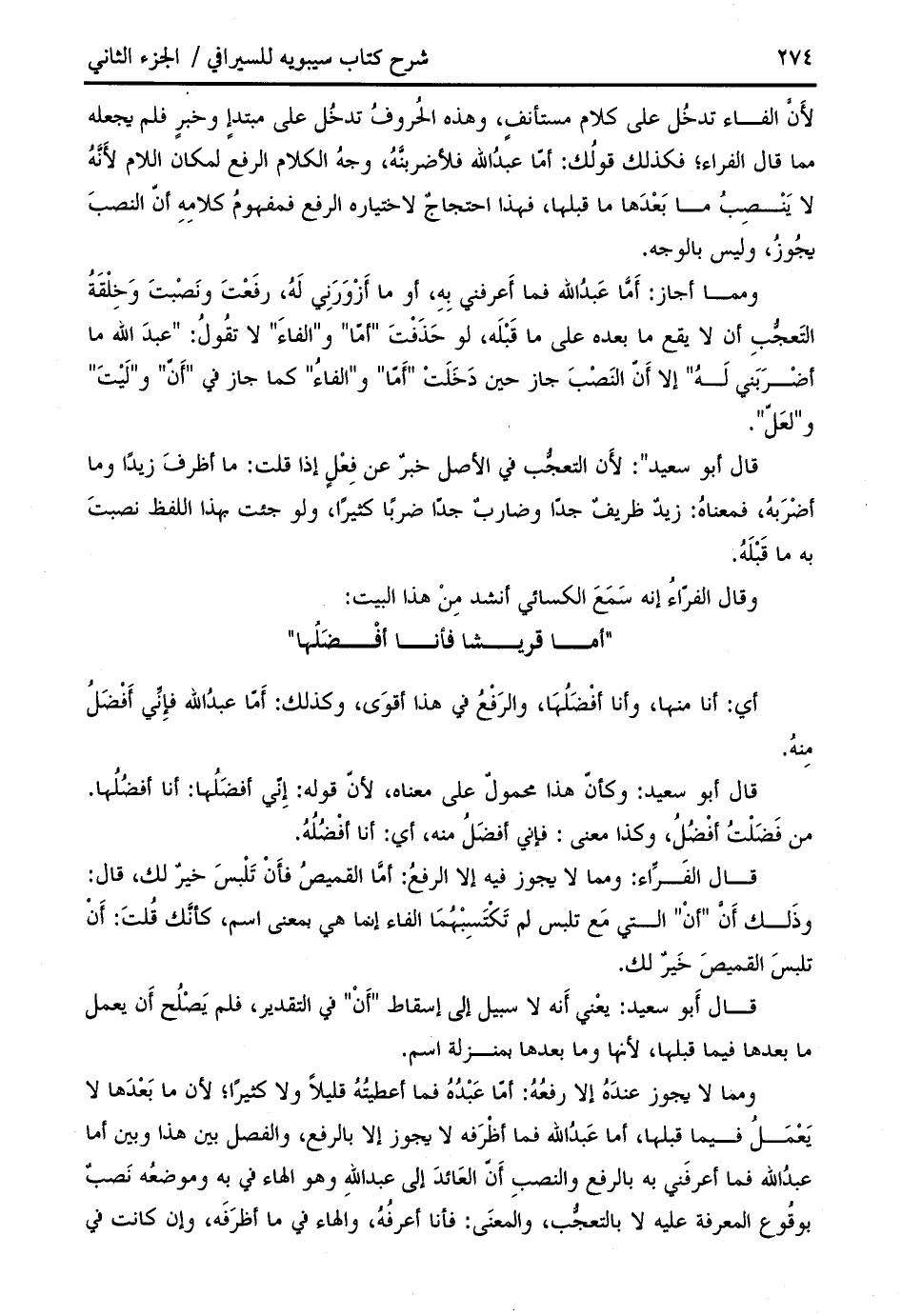 لأنّ الفاء تدخل على كلام مستأنف، وهذه الحروف تدخل على مبتدإ وخبر فلم يجعله مما قال الفراء؛ فكذلك قولك: أمّا عبد الله فلأضربنّه، وجه الكلام الرفع لمكان اللام لأنّه لا ينصب ما بعدها ما قبلها، فهذا احتجاج لاختياره الرفع فمفهوم كلامه أنّ النصب يجوز، وليس بالوجه.