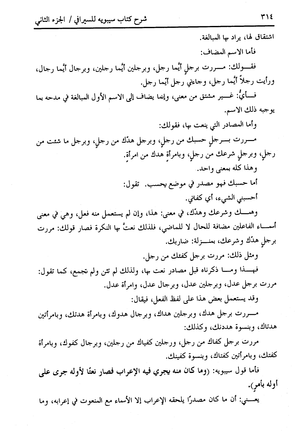 مررت برجل حسبك من رجل، وبرجل هدّك من رجل، وبرجل ما شئت من رجل، وبرجل شرعك من رجل، وبامرأة هدك من امرأة.