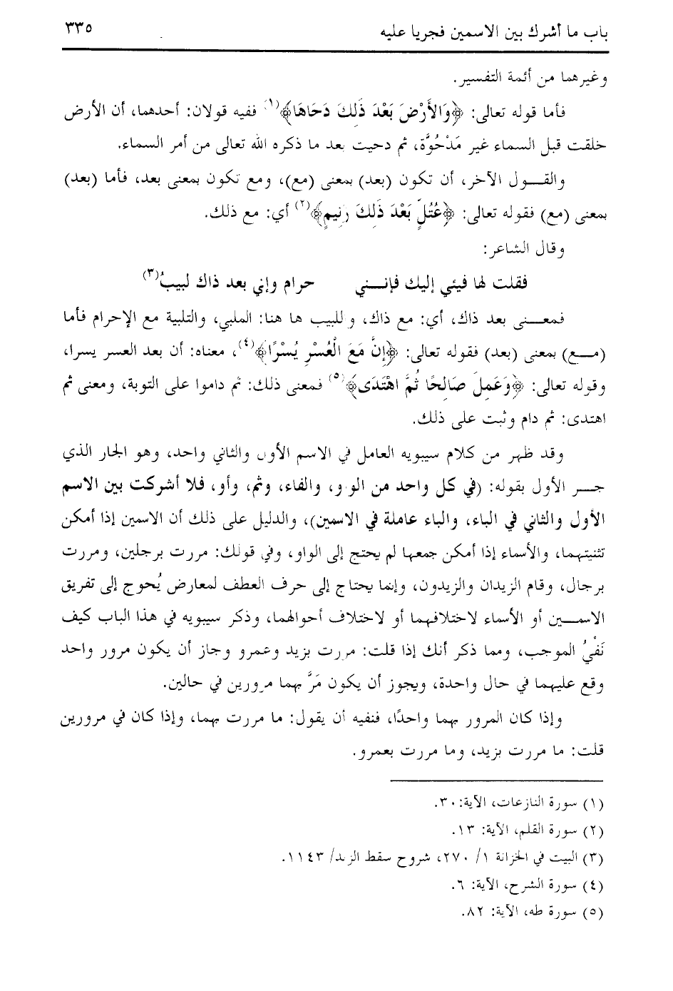 والقول الآخر، أن تكون (بعد) بمعنى (مع)، ومع تكون بمعنى بعد، فأما (بعد) بمعنى (مع) فقوله تعالى: عُتُلٍّ بَعْدَ ذلِكَ زَنِيمٍ (¬2) أي: مع ذلك.