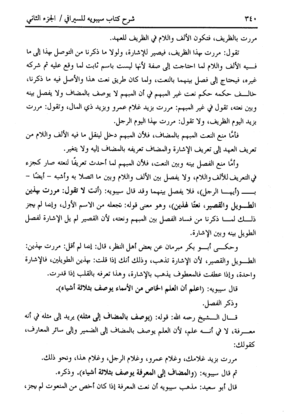 قال سيبويه: (اعلم أن العلم الخاص من الأسماء يوصف بثلاثة أشياء).