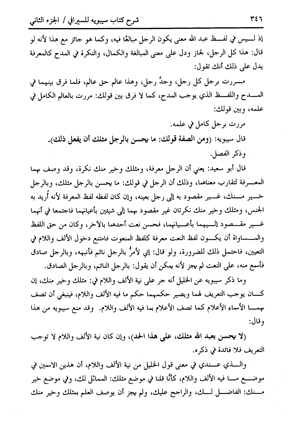 إذ ليس في لفظ عبد الله معنى يكون الرجل مبالغا فيه، وكما هو جائز مع هذا لأنه لو قال: هذا كل الرجل، لجاز ودل على معنى المبالغة والكمال، والنكرة في المدح كالمعرفة يدل على ذلك أنك تقول: