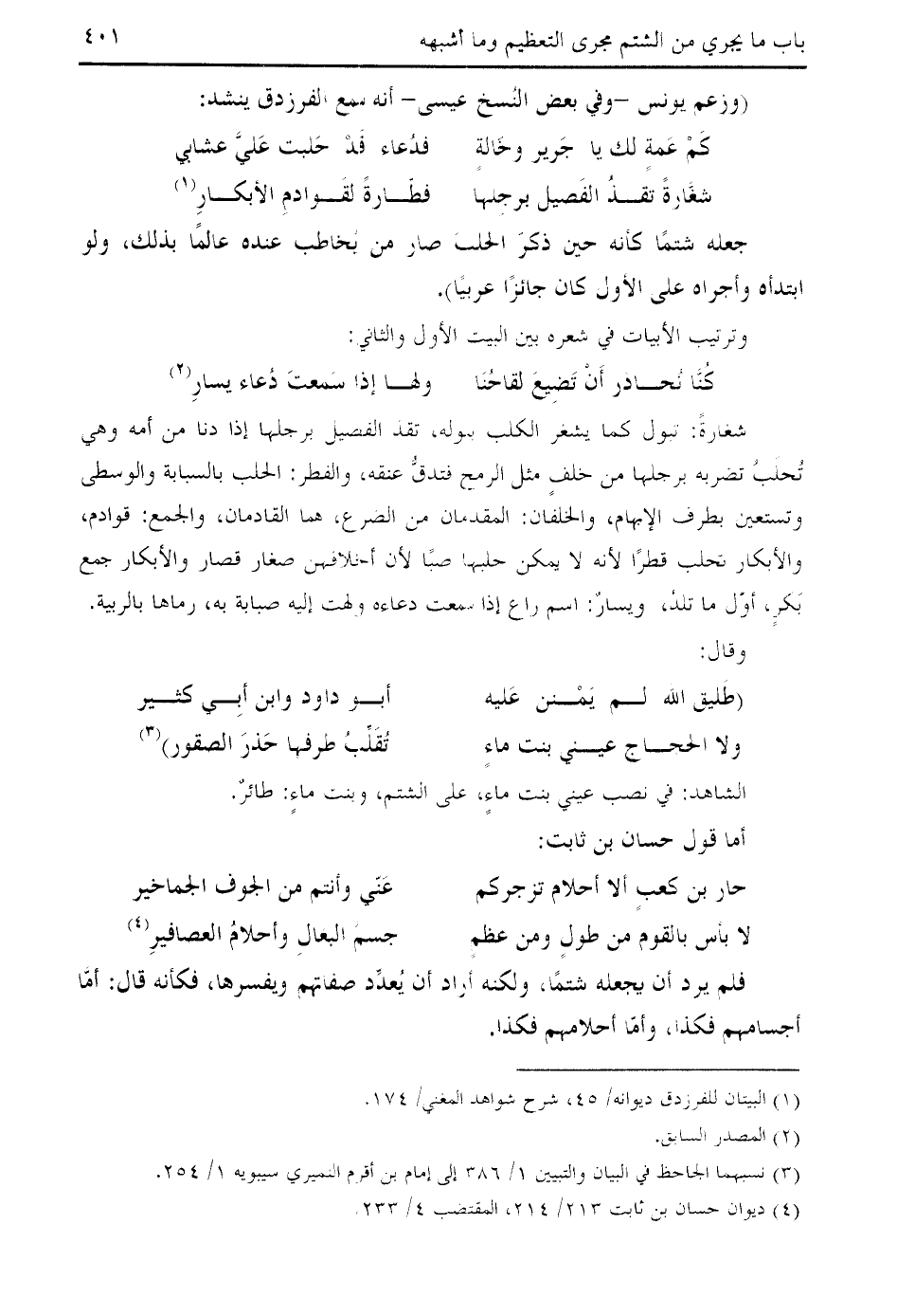 (¬4) ديوان حسان بن ثابت 213/ 214، المقتضب 4/ 233.