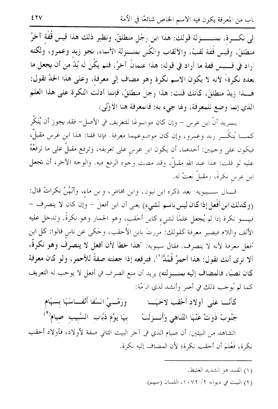 الشاهد من البيتين: أن صيام الذي في آخر البيت الثاني صفة لأولاد، فأولاد أحقب نكرة، فعلم أن أحقب نكرة؛ لأن المضاف إليه نكرة.