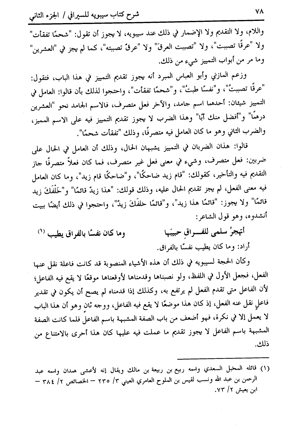 (¬1) قائله المخبل السعدي واسمه ربيع بن ربيعة بن مالك ويقال إنه لأعشى همدان واسمه عبد الرحمن بن عبد الله ونسب لقيس بن الملوح العامري العيني 3/ 235 - الخصائص 2/ 384 - ابن يعيش 2/ 73.