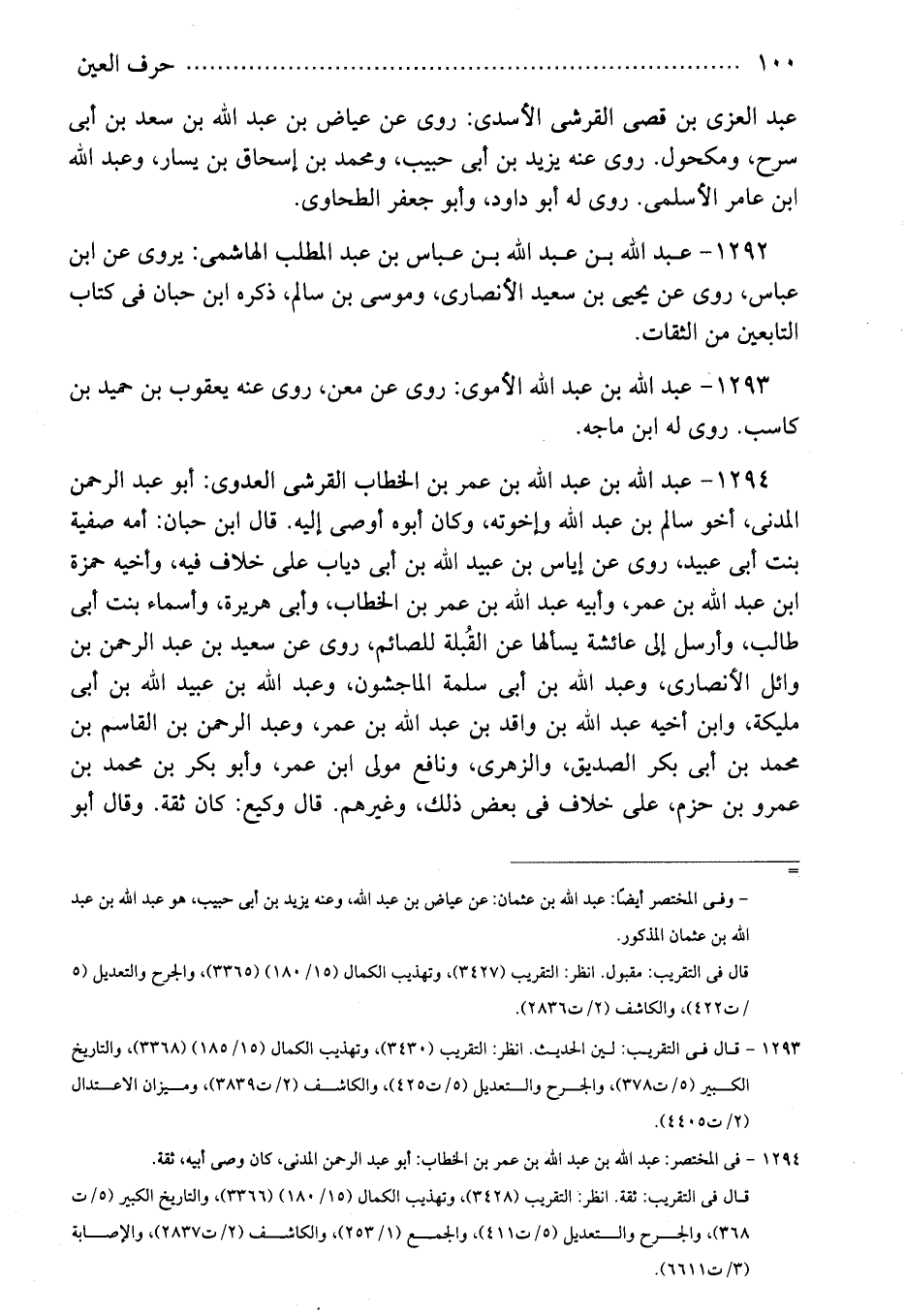 1294 - فى المختصر: عبد الله بن عبد الله بن عمر بن الخطاب: أبو عبد الرحمن المدنى، كان وصى أبيه، ثقة.