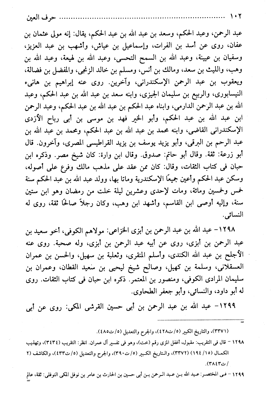 1299 - فى المختصر: عبد الله بن عبد الرحمن بن أبى حسين بن الحارث بن عامر بن نوفل المكى النوفلى: ثقة، عالم