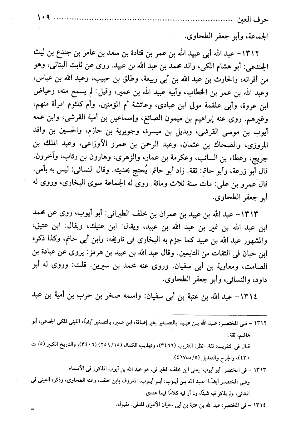 1312 - فى المختصر: عبد الله بن عبيد: بالتصغير بغير إضافة، ابن عمير، بالتصغير أيضًا، الليثى المكى الجدعى، أبو هاشم، ثقة.