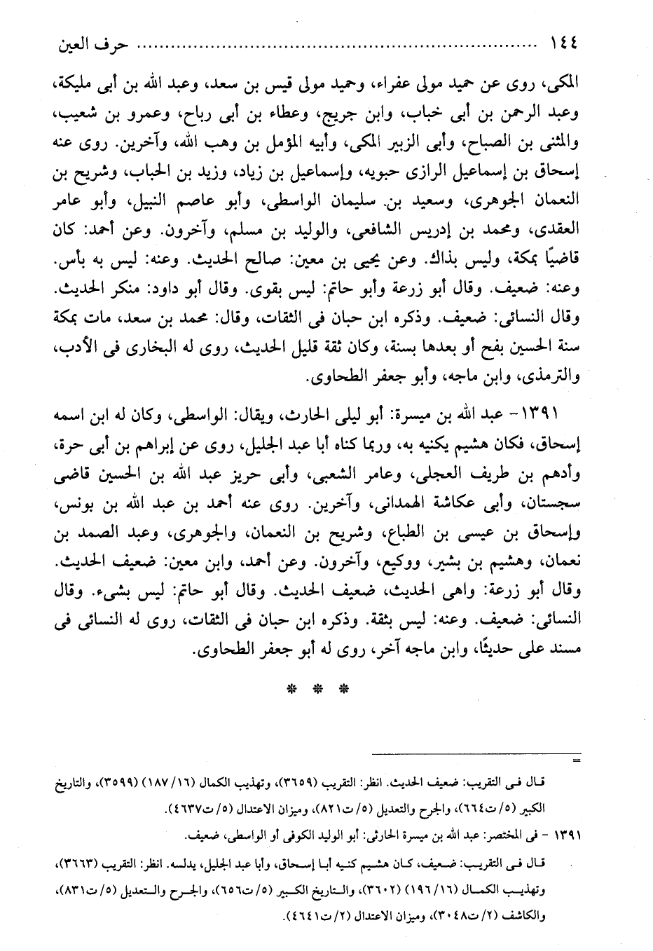 1391 - فى المختصر: عبد الله بن ميسرة الحارثى: أبو الوليد الكوفى أو الواسطى، ضعيف.