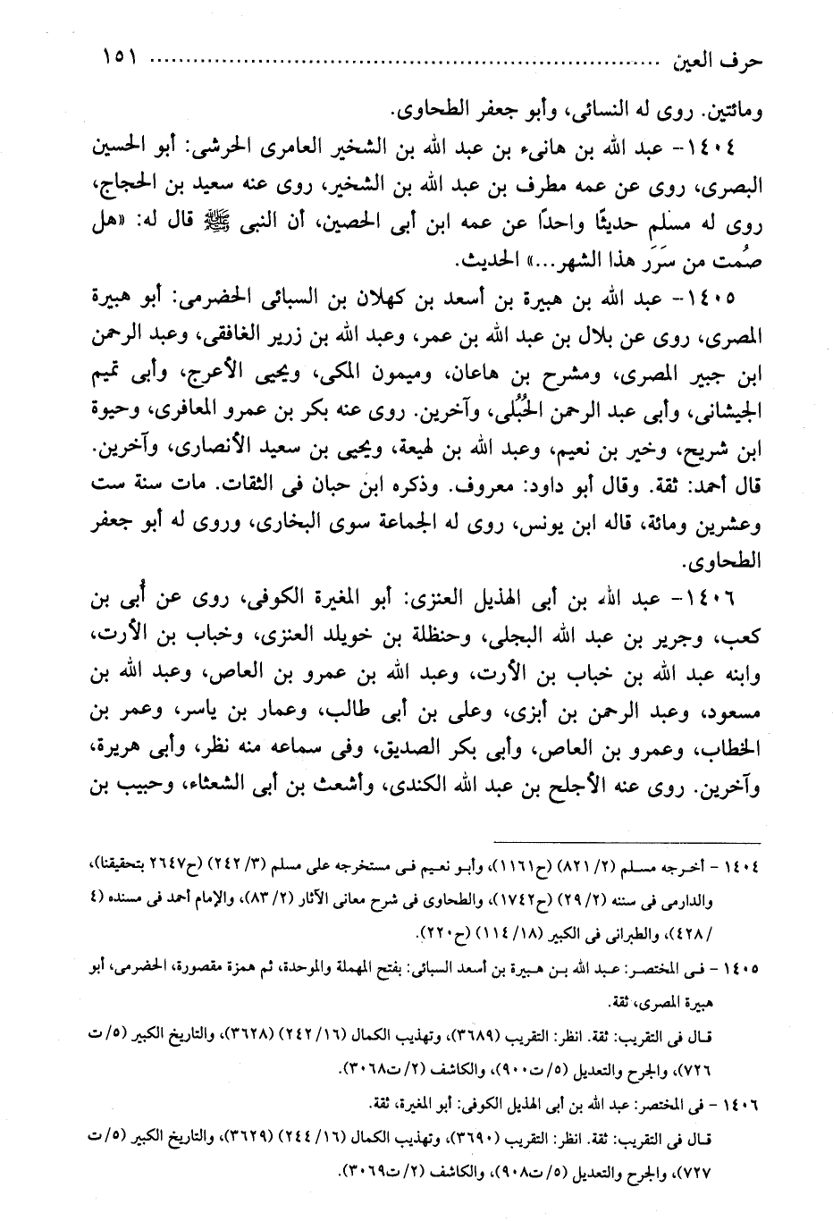 1404 - عبد الله بن هانىء بن عبد الله بن الشخير العامرى الحرشى: أبو الحسين البصرى، روى عن عمه مطرف بن عبد الله بن الشخير، روى عنه سعيد بن الحجاج، روى له مسلم حديثًا واحدًا عن عمه ابن أبى الحصين، أن النبى - صلى الله عليه وسلم - قال له: "هل صُمت من سَرَر هذا الشهر ... " الحديث.