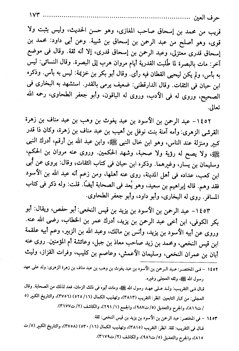 1452 - فى المختصر: عبد الرحمن بن الأسود بن عبد يغوث بن وهب بن عبد مناف بن زهرة الزهرى: ولد على عهد رسول الله - صلى الله عليه وسلم -، وثقه العجلى وغيره.