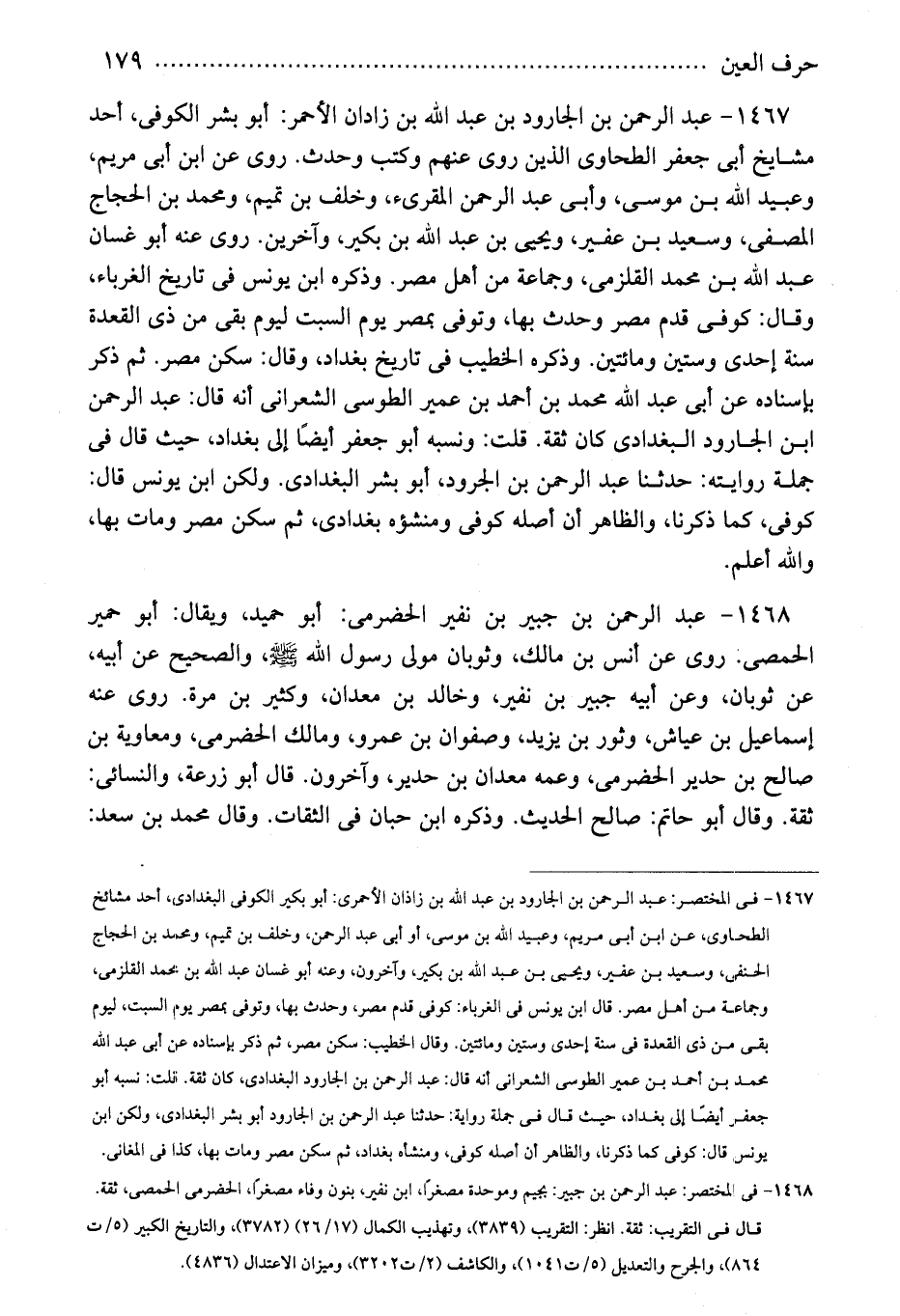 1468 - فى المختصر: عبد الرحمن بن جبير: بجيم وموحدة مصغرًا، ابن نفير، بنون وفاء مصغرًا، الحضرمى الحمصى، ثقة.
