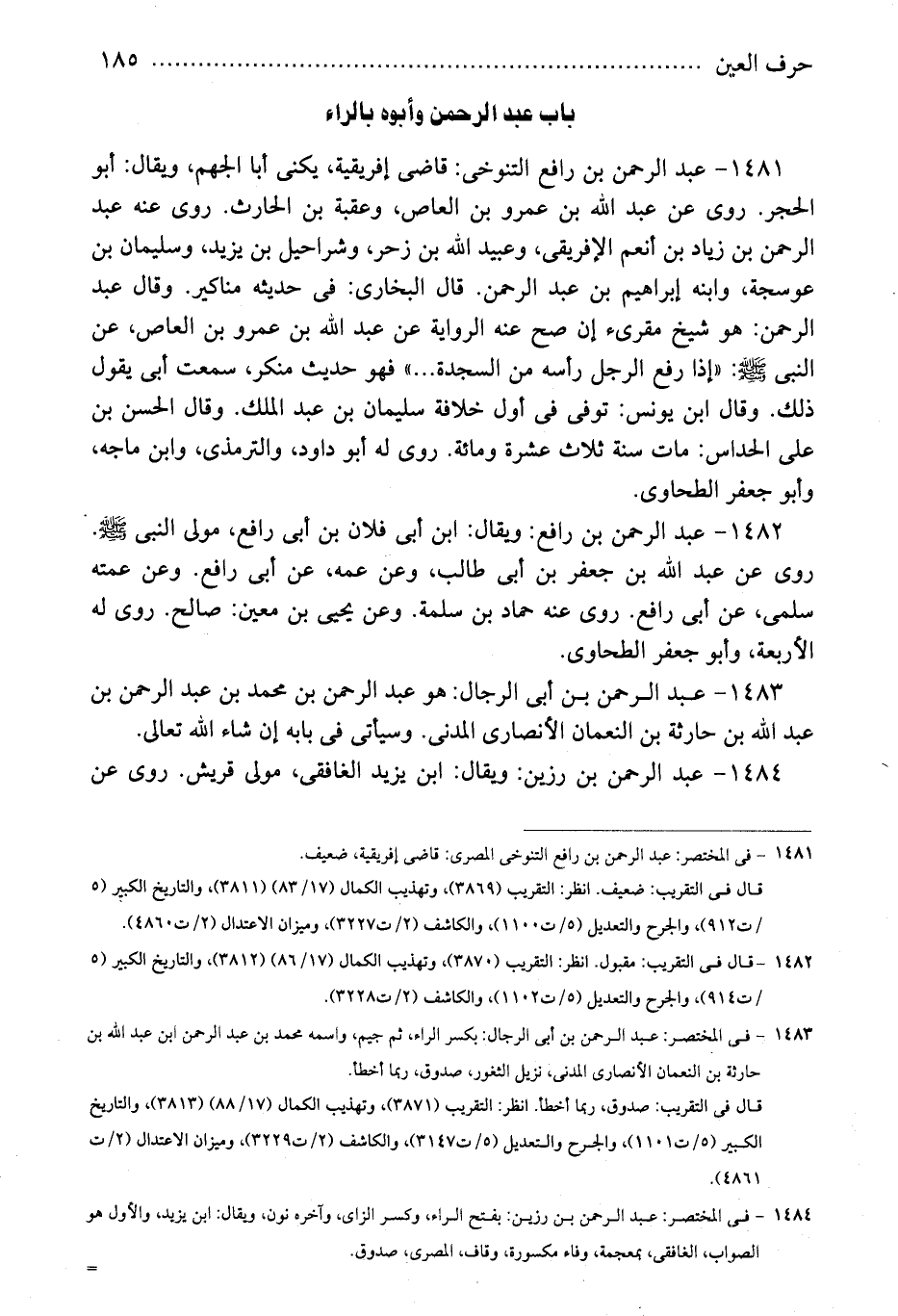 1481 - فى المختصر: عبد الرحمن بن رافع التنوخى المصرى: قاضى إفريقية، ضعيف.