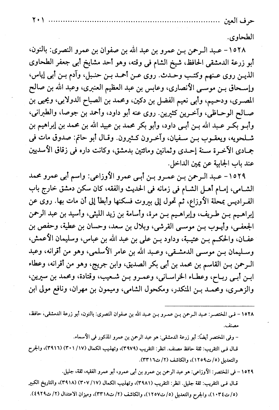 1528 - فى المختصر: عبد الرحمن بن عمرو بن عبد الله بن صفوان النصرى: بالنون، أبو زرعة الدمشقى، حافظ، مصنف.