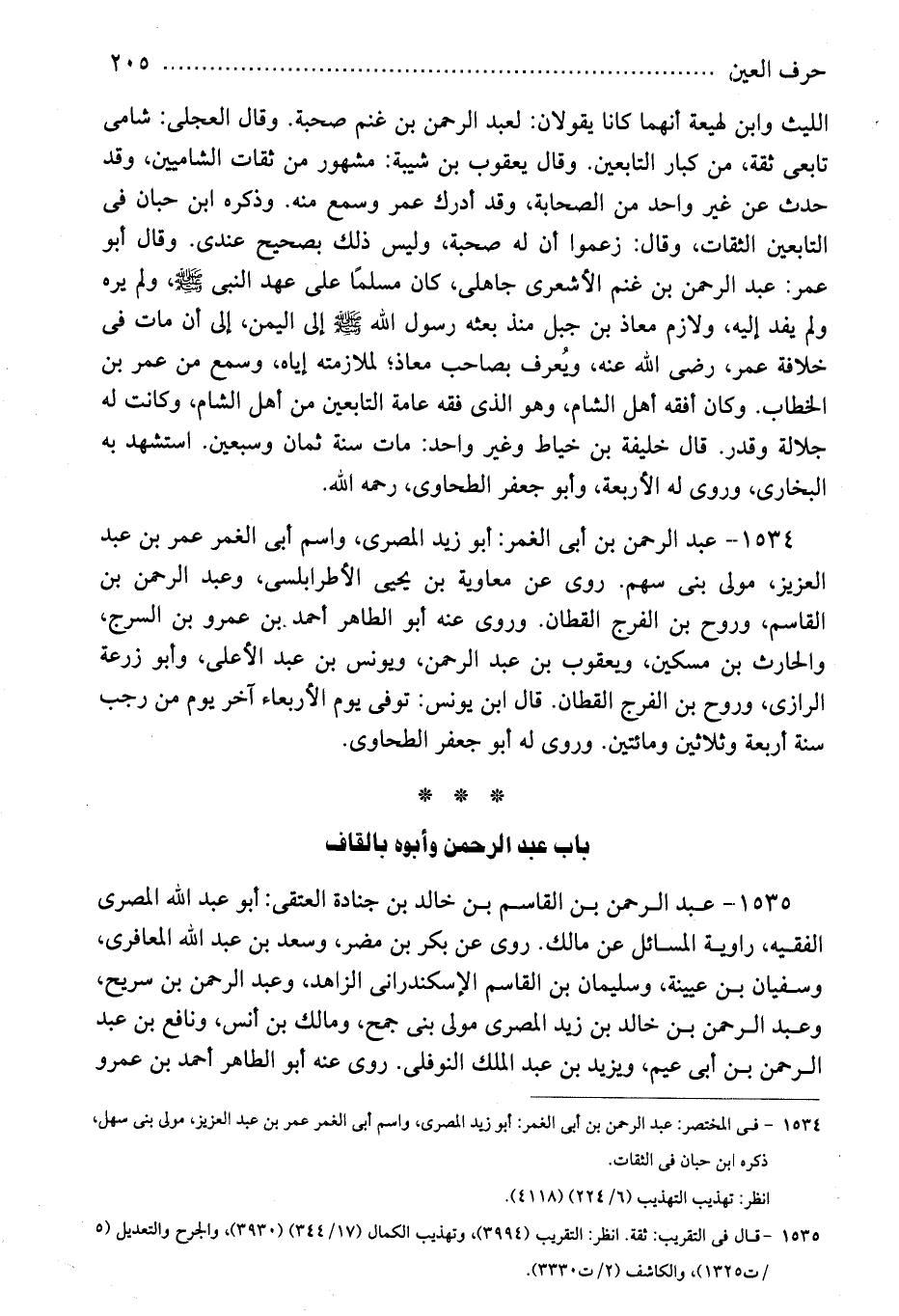 1534 - فى المختصر: عبد الرحمن بن أبى الغمر: أبو زيد المصرى، واسم أبى الغمر عمر بن عبد العزيز، مولى بنى سهل، ذكره ابن حبان فى الثقات.