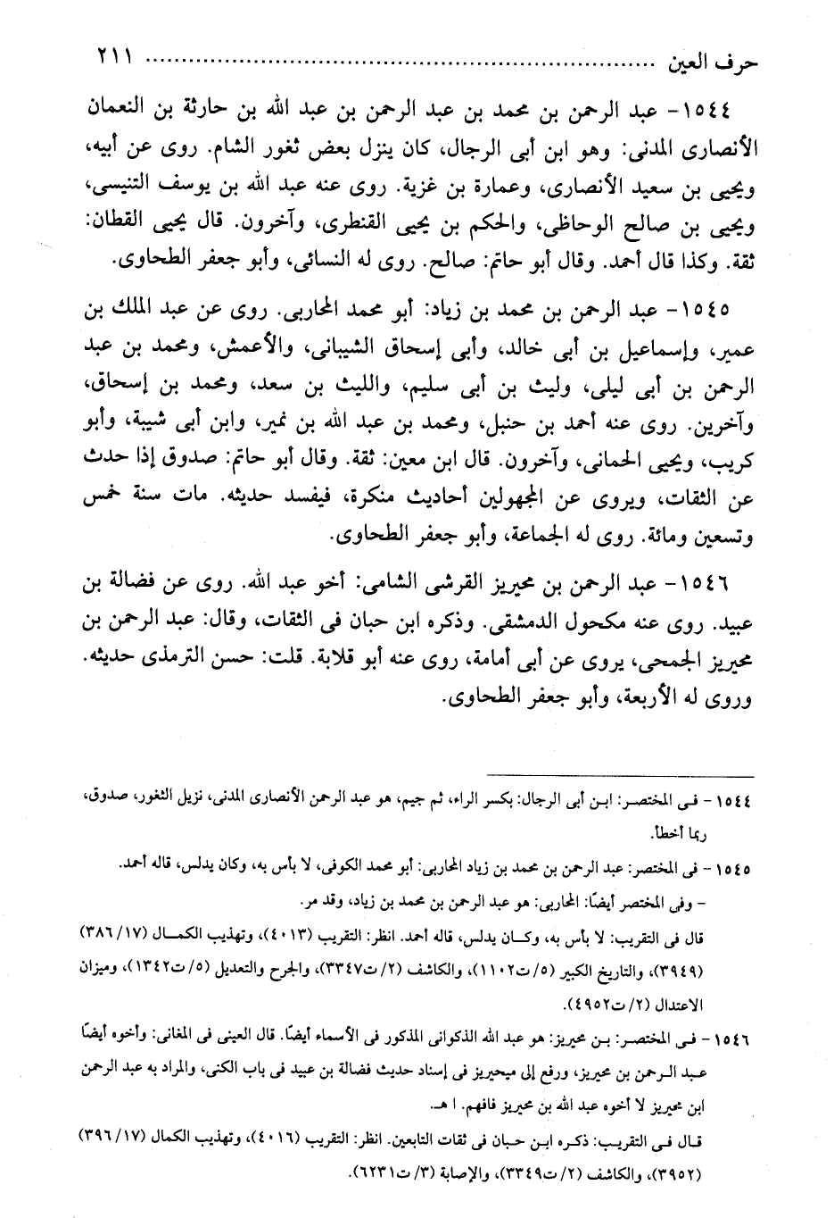1544 - فى المختصر: ابن أبى الرجال: بكسر الراء، ثم جيم، هو عبد الرحمن الأنصارى المدنى، نزيل الثغور، صدوق، ربما أخطأ.