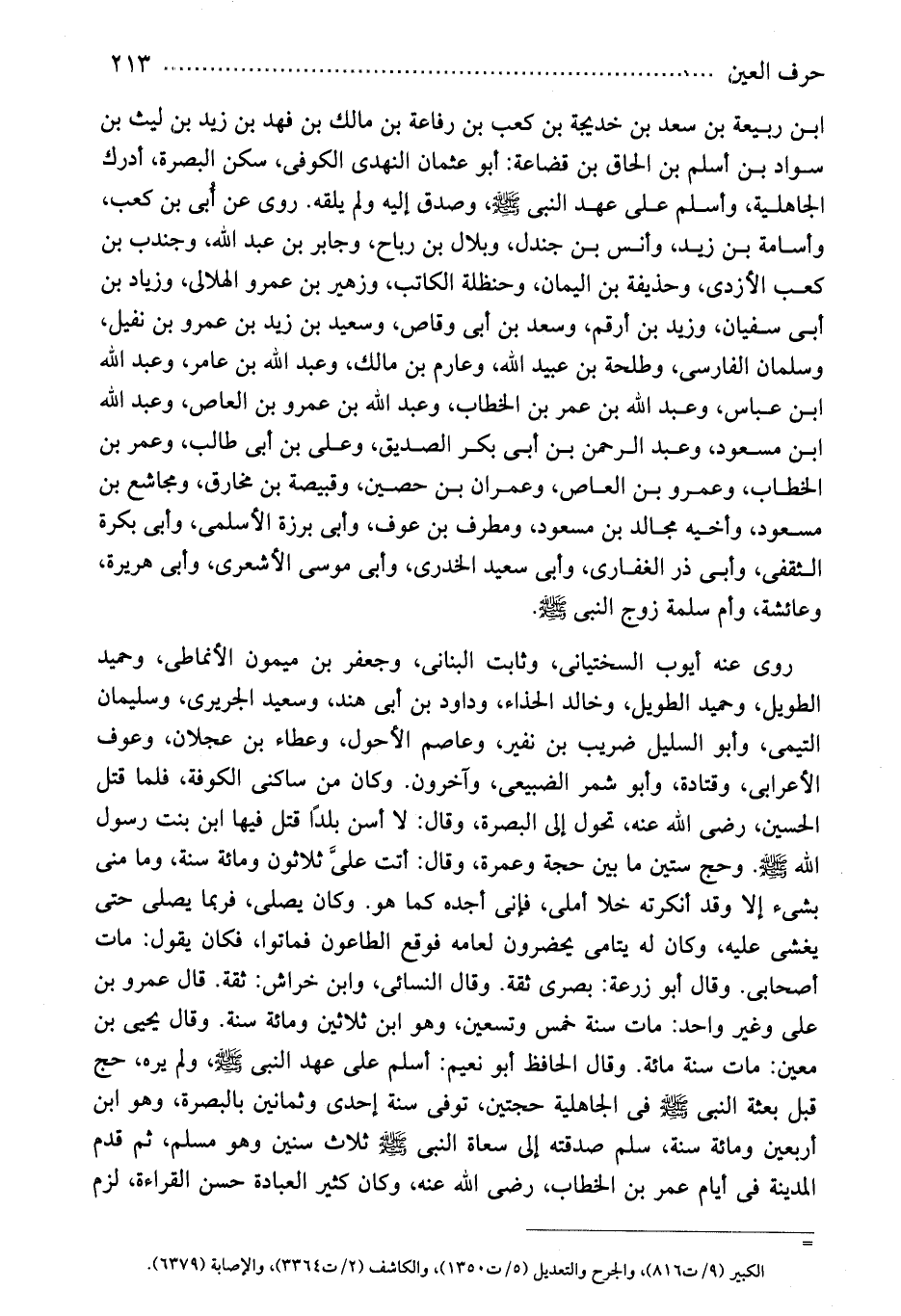 الكبير (9/ت816) ، والجرح والتعديل (5/ت1350) ، والكاشف (2/ت3364) ، والإصابة (6379) .