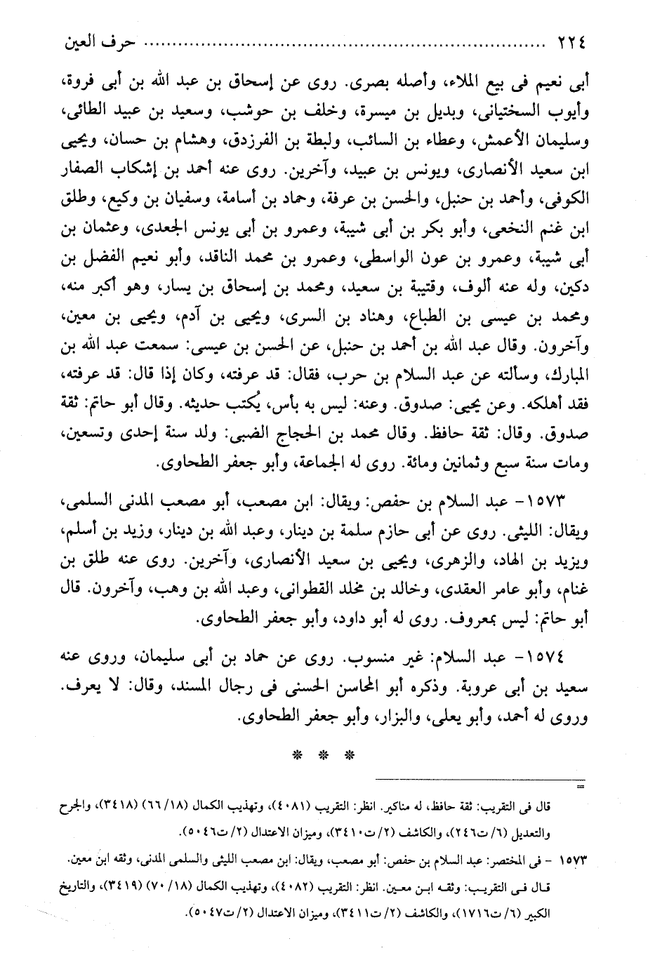 1573 - عبد السلام بن حفص: ويقال: ابن مصعب، أبو مصعب المدنى السلمى، ويقال: الليثى. روى عن أبى حازم سلمة بن دينار، وعبد الله بن دينار، وزيد بن أسلم، ويزيد بن الهاد، والزهرى، ويحيى بن سعيد الأنصارى، وآخرين. روى عنه طلق بن غنام، وأبو عامر العقدى، وخالد بن مخلد القطوانى، وعبد الله بن وهب، وآخرون. قال أبو حاتم: ليس بمعروف. روى له أبو داود، وأبو جعفر الطحاوى.