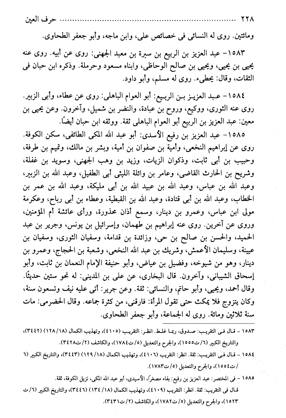 1585 - فى المختصر: عبد العزيز بن رفيع: بفاء مصغرًا، الأسيدى، أبو عبد الله المكى، نزيل الكوفة، ثقة.