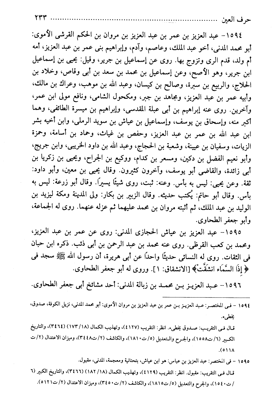 1594 - فى المختصر: عبد العزيز بن عمر بن عبد العزيز بن مروان الأموى: أبو محمد المدنى، نزيل الكوفة، صدوق، يخطىء.