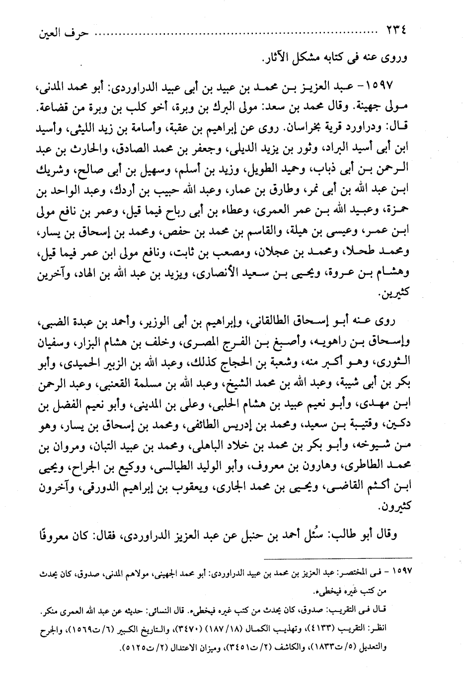 1597 - فى المختصر: عبد العزيز بن محمد بن عبيد الدراوردى: أبو محمد الجهينى، مولاهم المدنى، صدوق، كان يحدث من كتب غيره فيخطىء.