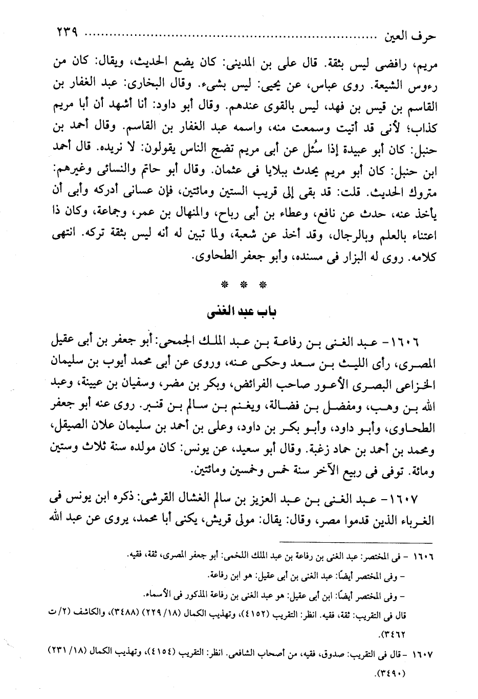 1606 - فى المختصر: عبد الغنى بن رفاعة بن عبد الملك اللخمى: أبو جعفر المصرى، ثقة، فقيه.