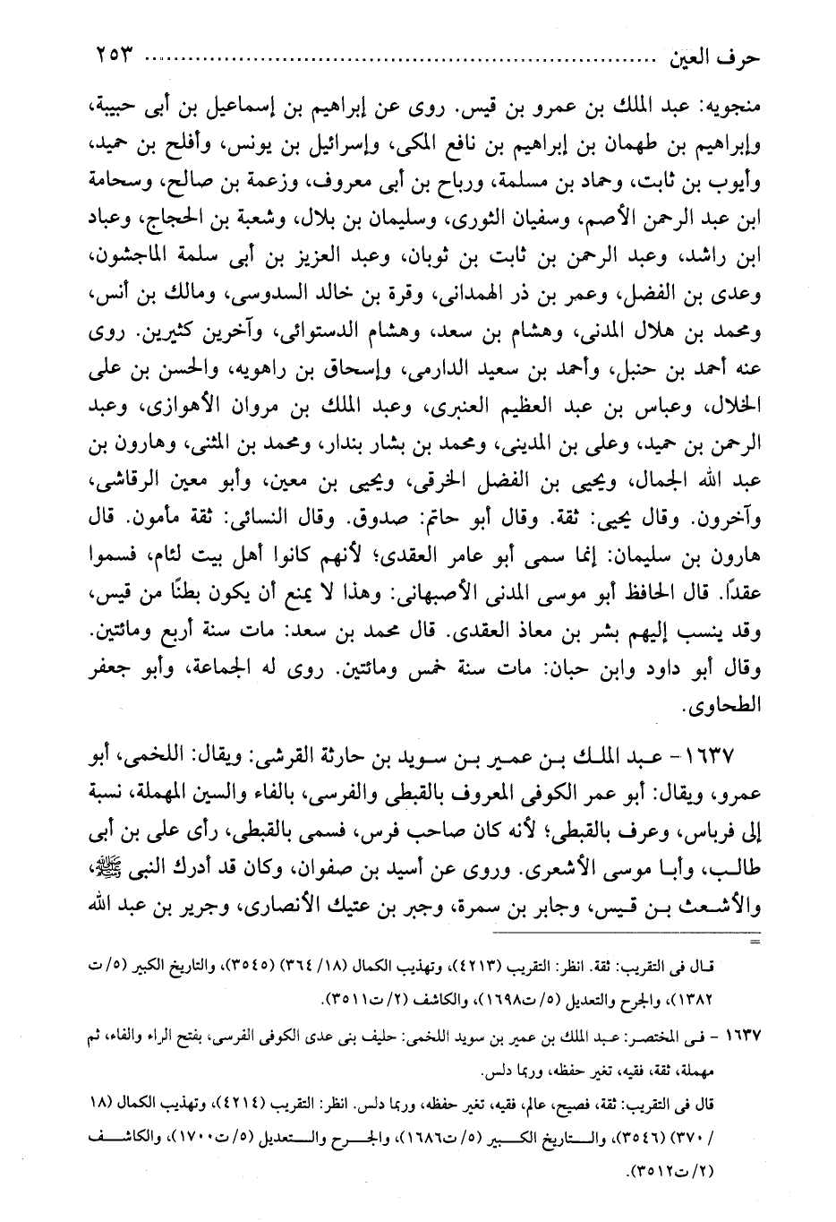1637 - فى المختصر: عبد الملك بن عمير بن سويد اللخمى: حليف بنى عدى الكوفى الفرسى، بفتح الراء والفاء، ثم مهملة، ثقة، فقيه، تغير حفظه، وربما دلس.