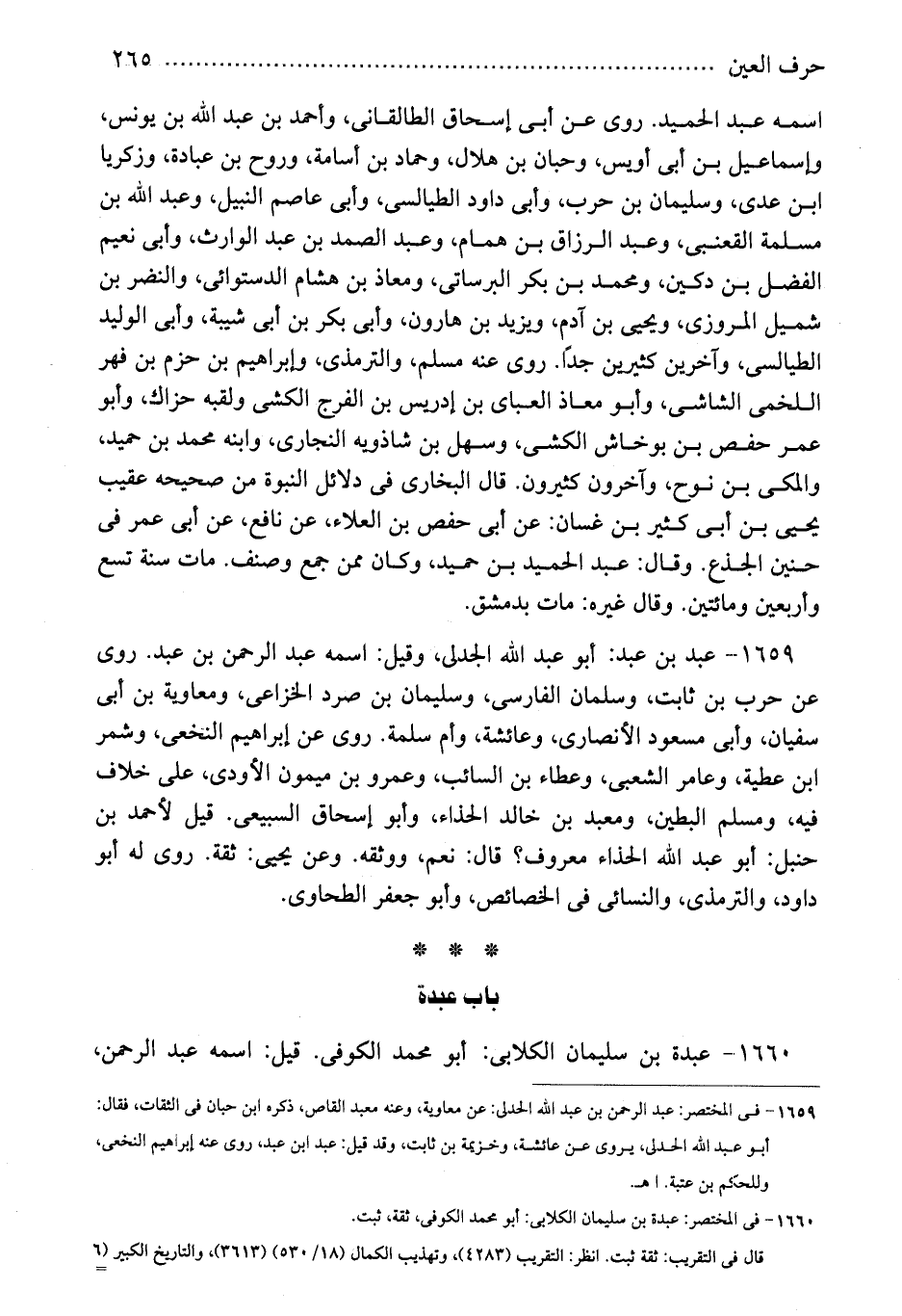 1660 - فى المختصر: عبدة بن سليمان الكلابى: أبو محمد الكوفى، ثقة، ثبت.
