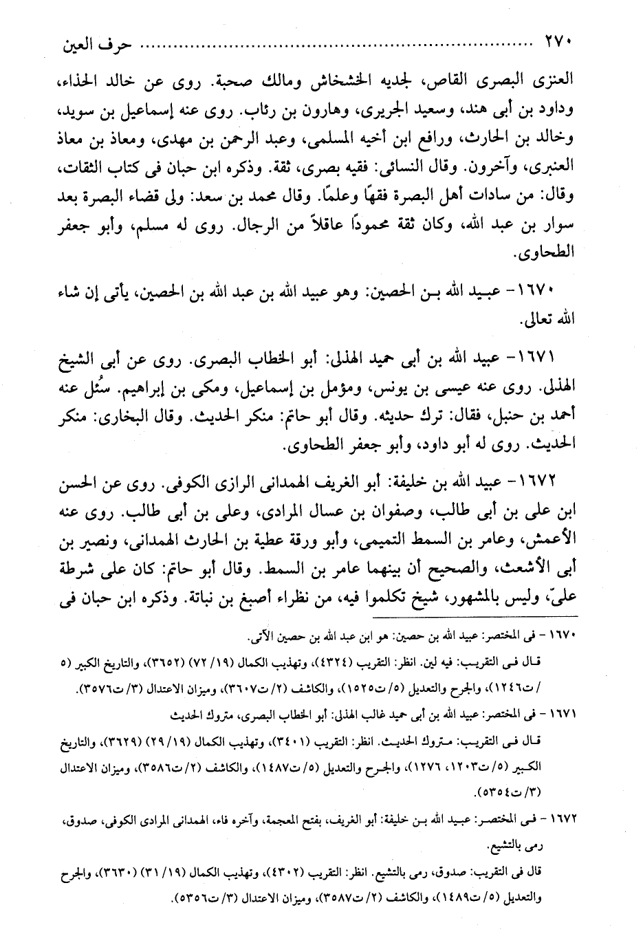 1670 - فى المختصر: عبيد الله بن حصين: هو ابن عبد الله بن حصين الآتى.