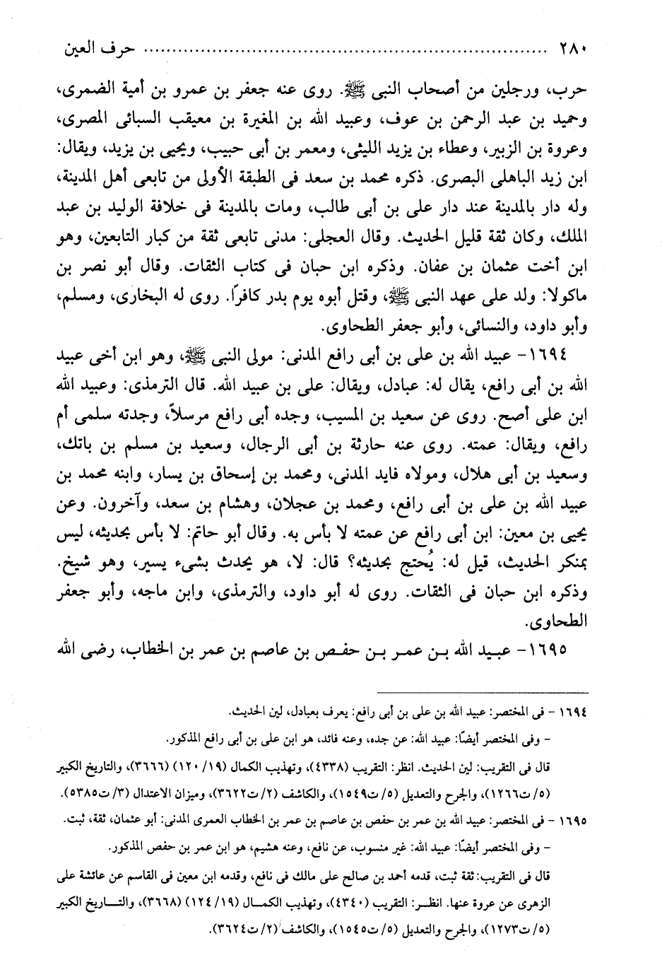 1694 - فى المختصر: عبيد الله بن على بن أبى رافع: يعرف بعبادل، لين الحديث.