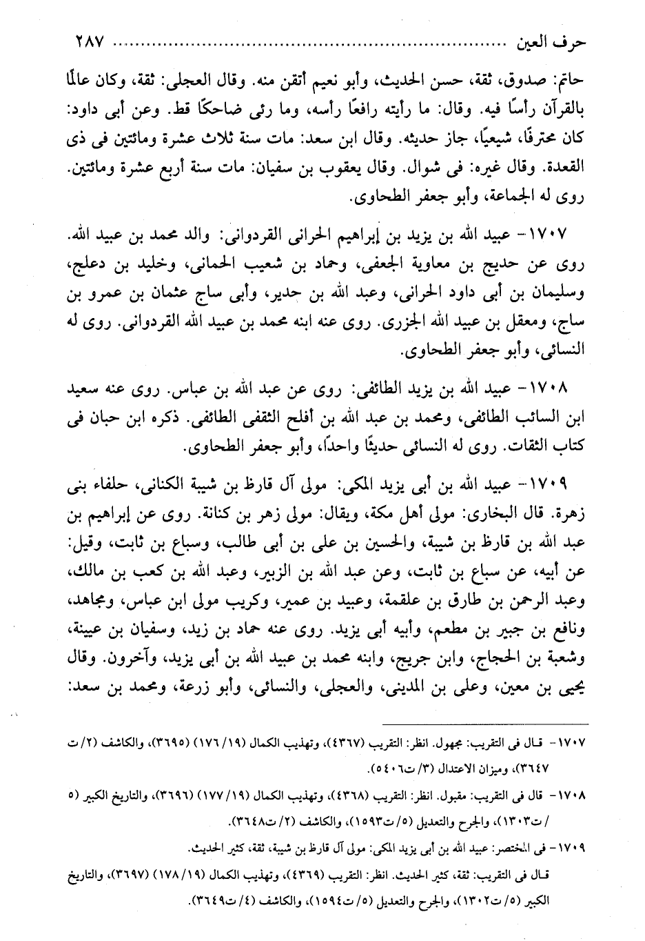1708 - عبيد الله بن يزيد الطائفى: روى عن عبد الله بن عباس. روى عنه سعيد ابن السائب الطائفى، ومحمد بن عبد الله بن أفلح الثقفى الطائفى. ذكره ابن حبان فى كتاب الثقات. روى له النسائى حديثًا واحدًا، وأبو جعفر الطحاوى.