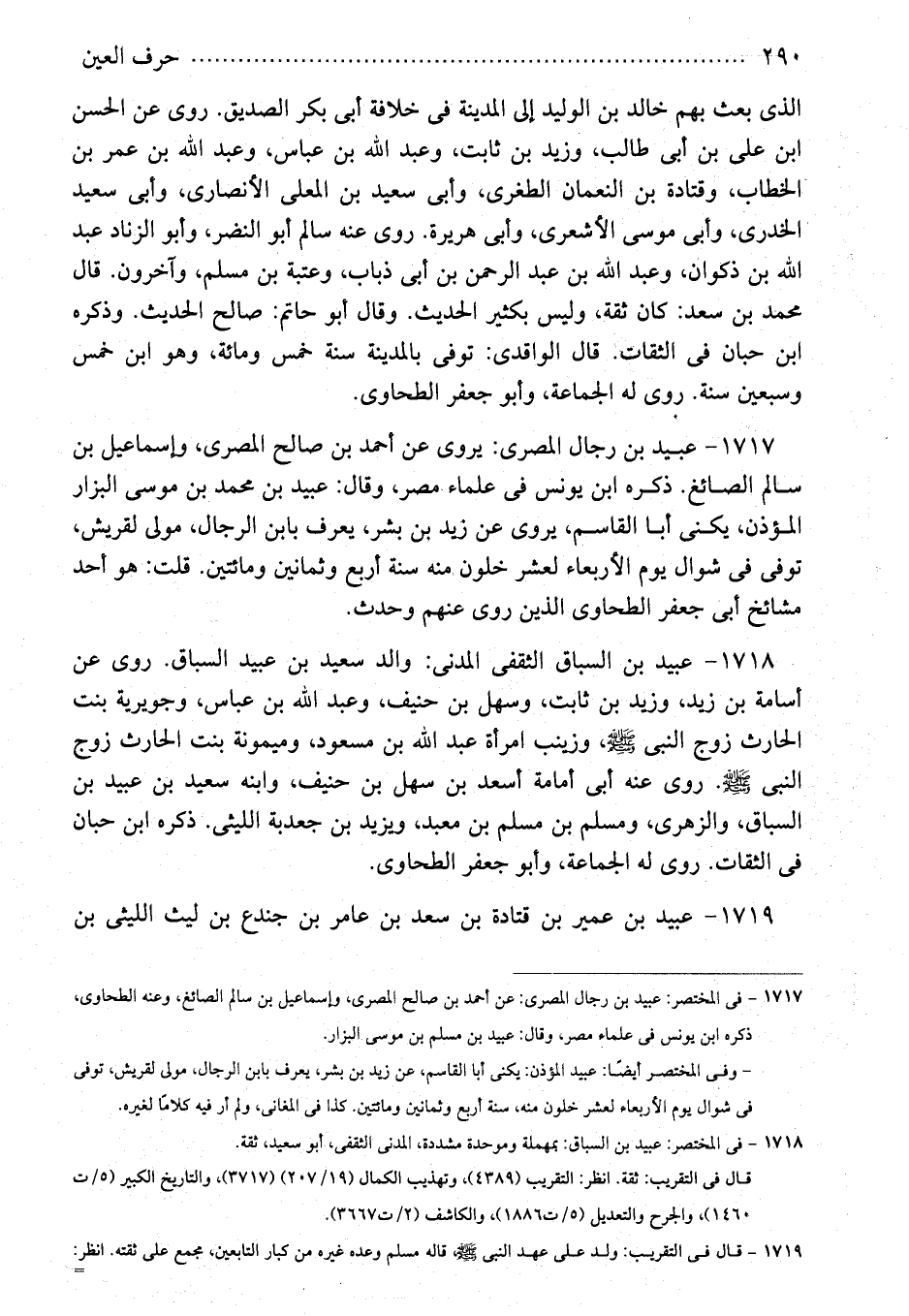 1718 - فى المختصر: عبيد بن السباق: بمهملة وموحدة مشددة، المدنى الثقفى، أبو سعيد، ثقة.