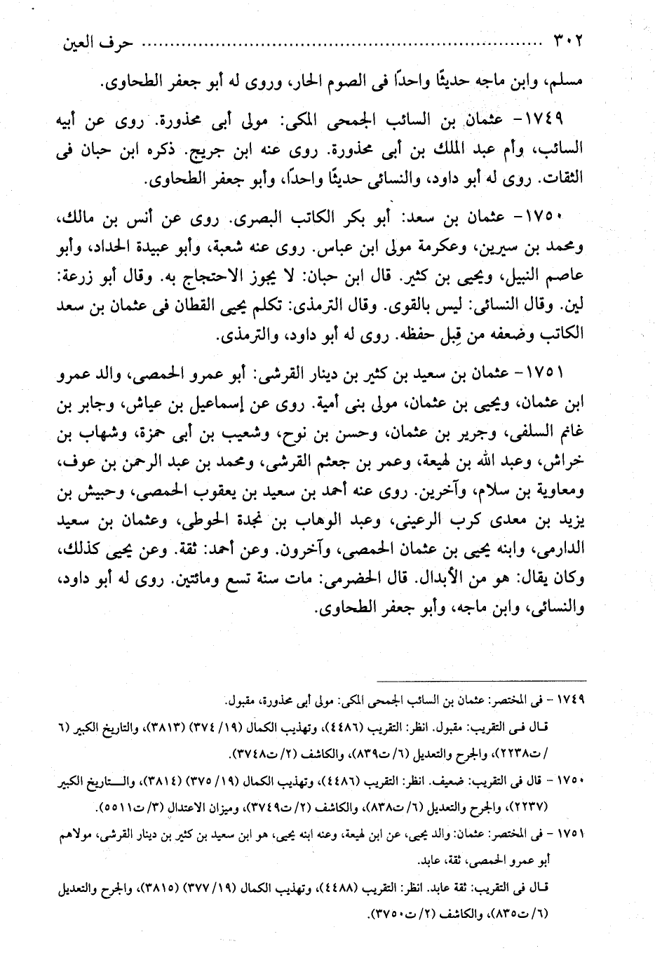 1751 - فى المختصر: عثمان: والد يحيى، عن ابن لهيعة، وعنه ابنه يحيى، هو ابن سعيد بن كثير بن دينار القرشى، مولاهم أبو عمرو الحمصى، ثقة، عابد.
