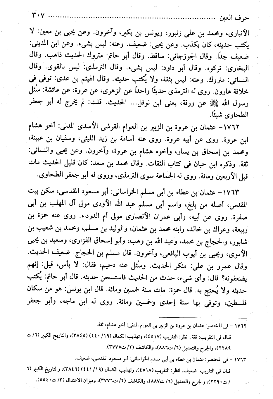 1762 - فى المختصر: عثمان بن عروة بن الزبير بن العوام المدنى: أخو هشام، ثقة.